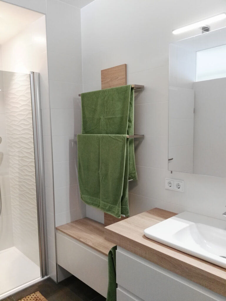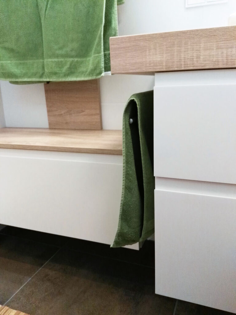 Die beiden Niro-Halterungen für die Badetücher wurden extra für dieses Projekt angefertigt.
