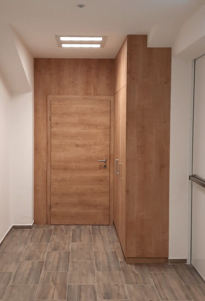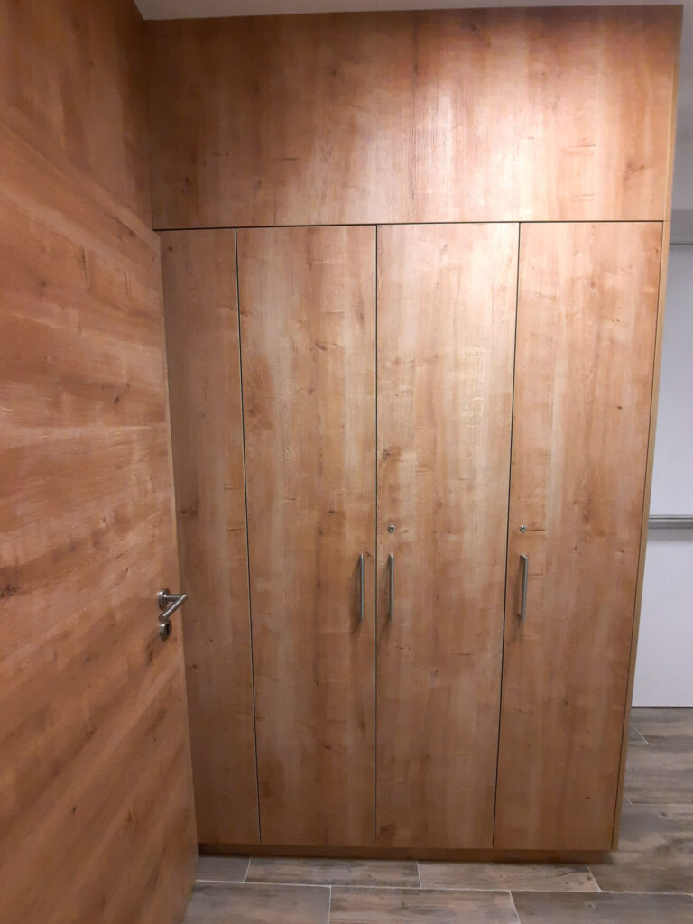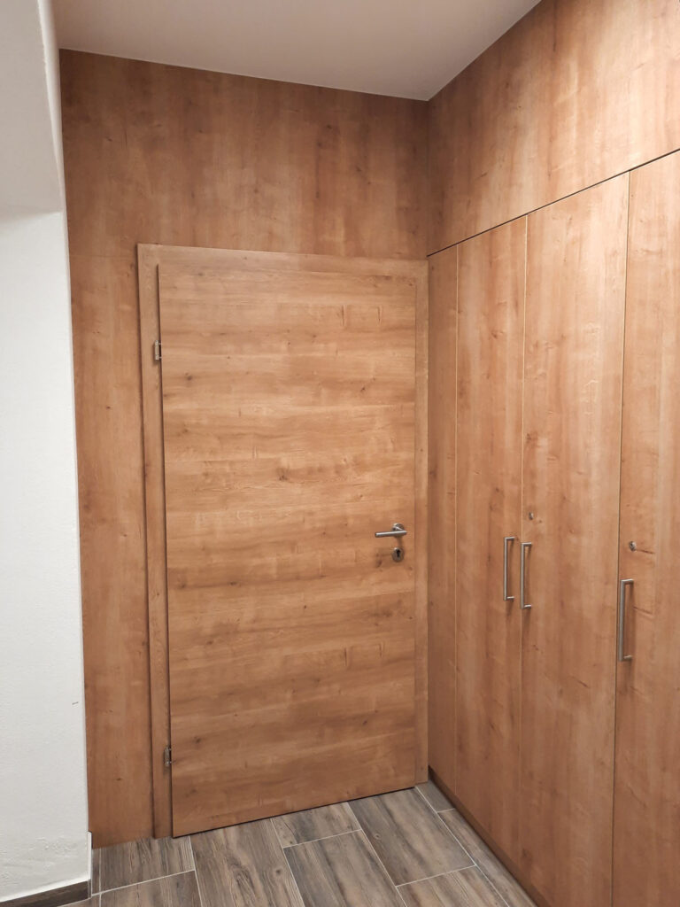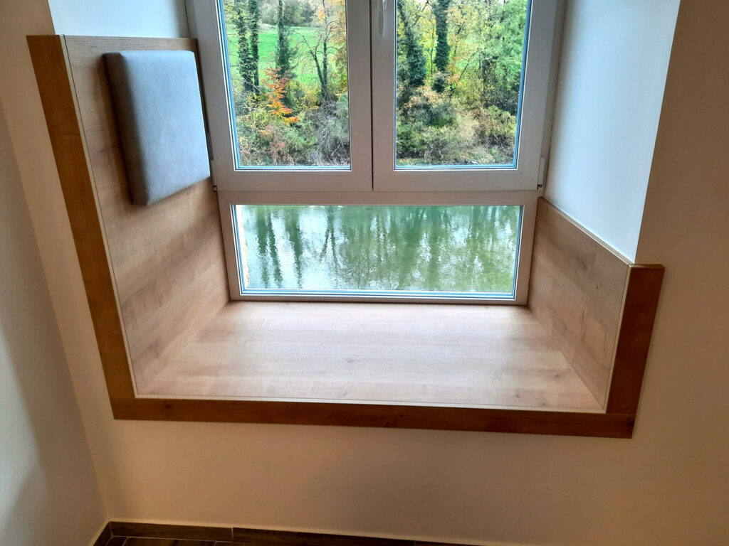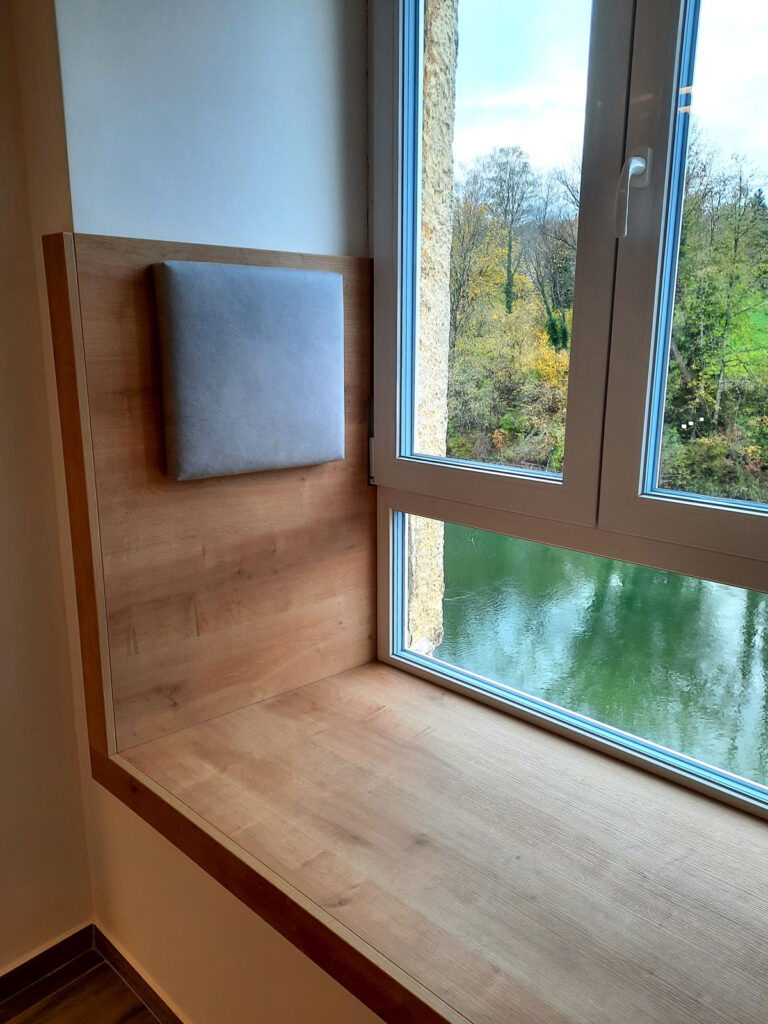 Für das Projekt "Gästehaus" wurden alle Eingangstüren persönlich angefertigt. Um mit der Zeit zu gehen wurde der Hochschrank an das alte Mauerwerk angepasst. Die gemütlichen Fensternischen bieten Platz um entspannt zu arbeiten oder zu lesen oder einfach nur um den tollen Ausblick zu genießen.