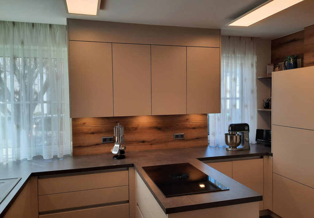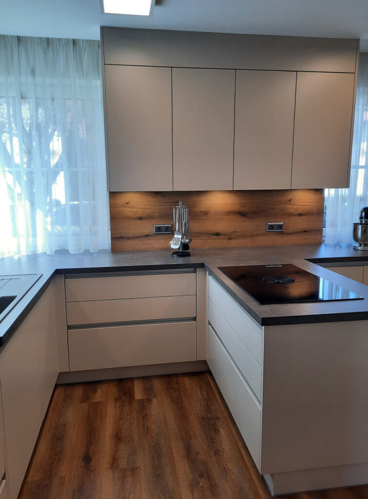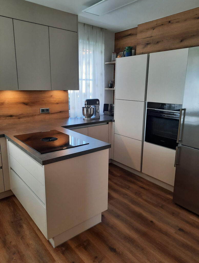 Nachdem die alte Zwischenmauer entfernt wurde, entstand Raum für eine offene Küche. Dieser wird jetzt optimal genutzt indem eine Kücheninsel mit bereits eingebauten Ceranfeld das Zimmer abrundet. In der Diashow unterhalb sehen Sie die Fotos, die vor dem Umbau geschossen wurden und vergleichsweise jene, die danach entstanden sind.