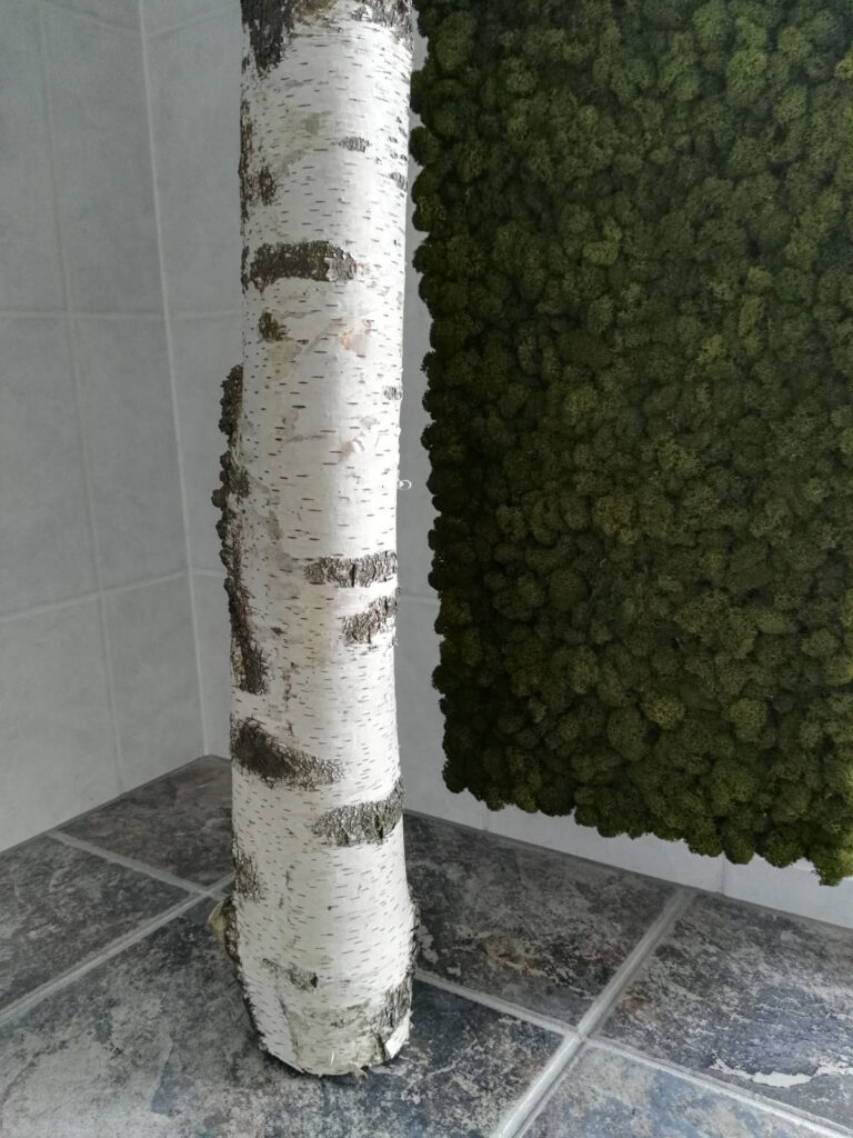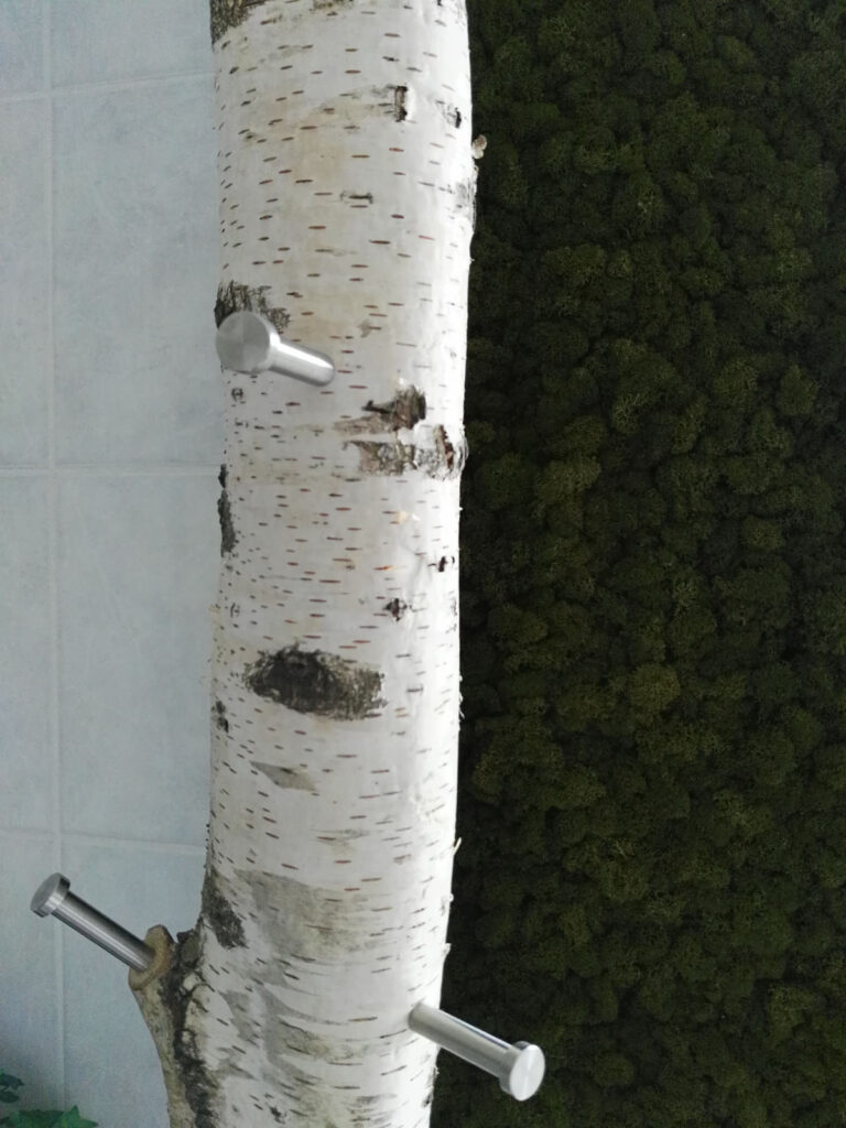 Der Birkenstamm ist nicht nur ein Blickfang, er dient auch als Garderobe.